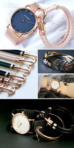 簡単に付け替えのできる豊富な種類のベルトと、アクセサリーの重ね付けの提案もポールヒューイットならでは。